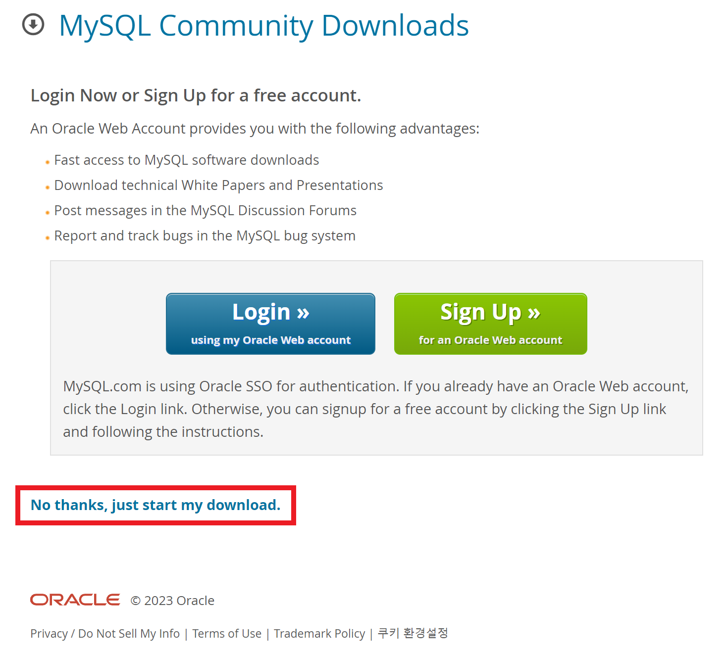 로그인 이나 회원가입을 하지 않고 No thanks, just start my download를 누르겠습니다.