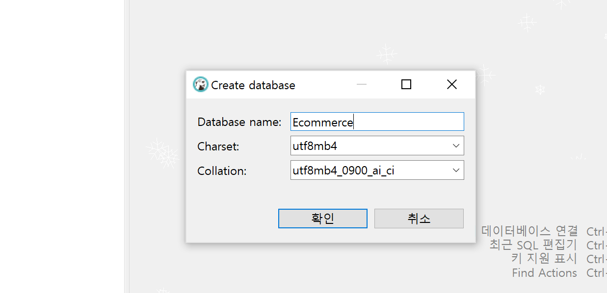 Database 이름을 편의상 Ecommerce라고 설정하겠습니다.