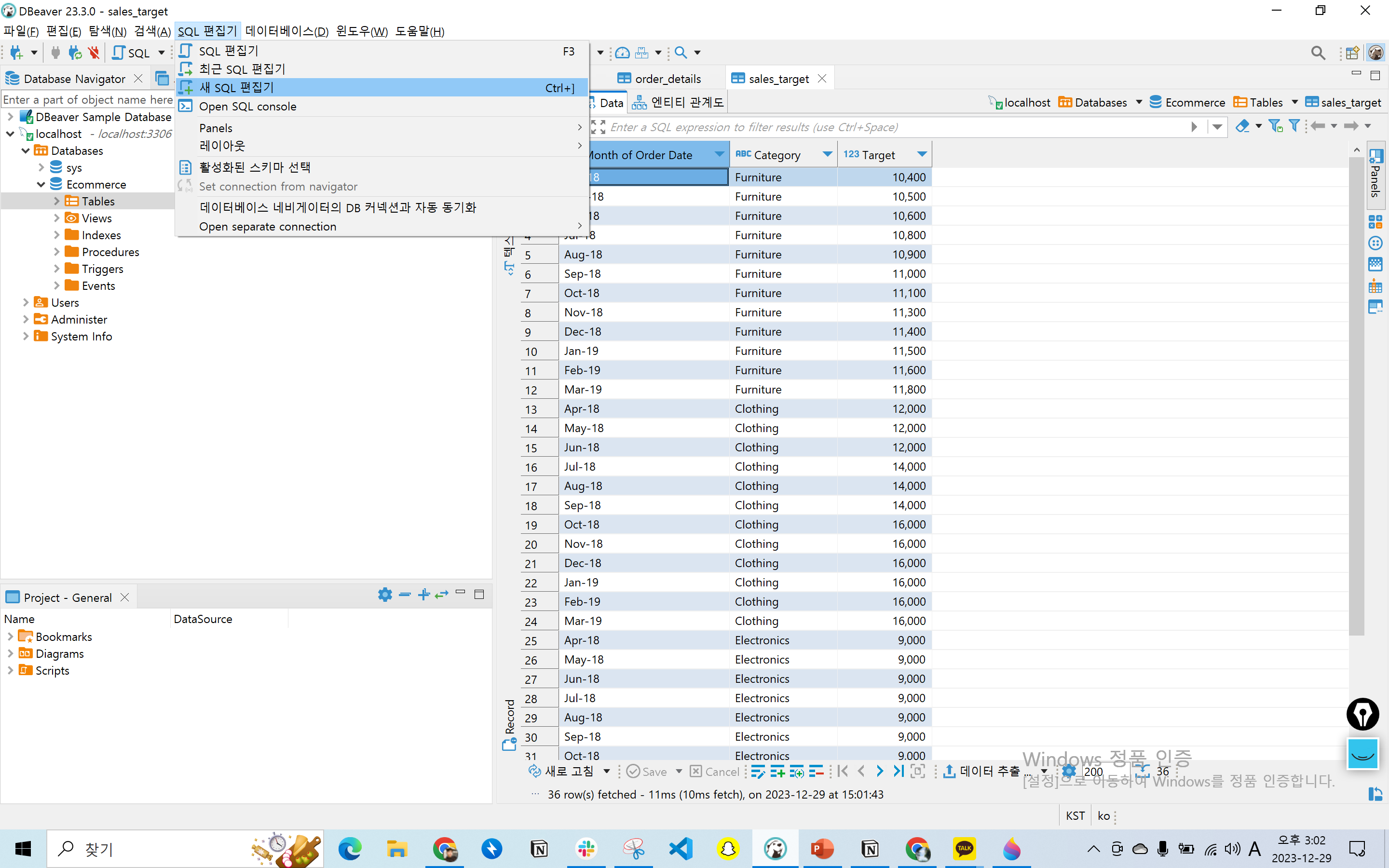 SQL편집기를 이용하여 데이터를 조회해 보겠습니다.