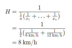 A지점과 B지점를 왕복하는데 걸리는 시간을 계산해보고자 한다. 갈때 6km/h 올때 12km/h로 온다고 했으니 각각 2시간,1시간이 걸려 총 3시간이 걸린다.