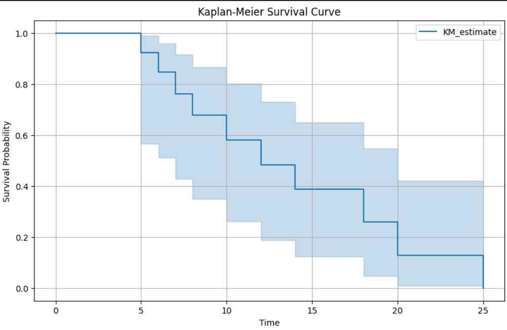 - 각 시간 점에서 생존 확률을 계산하고, 이를 통해 전체 생존 곡선을 작성.