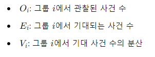 $\chi^2 = \frac{(O_1 - E_1)^2}{V_1} + \frac{(O_2 - E_2)^2}{V_2}$