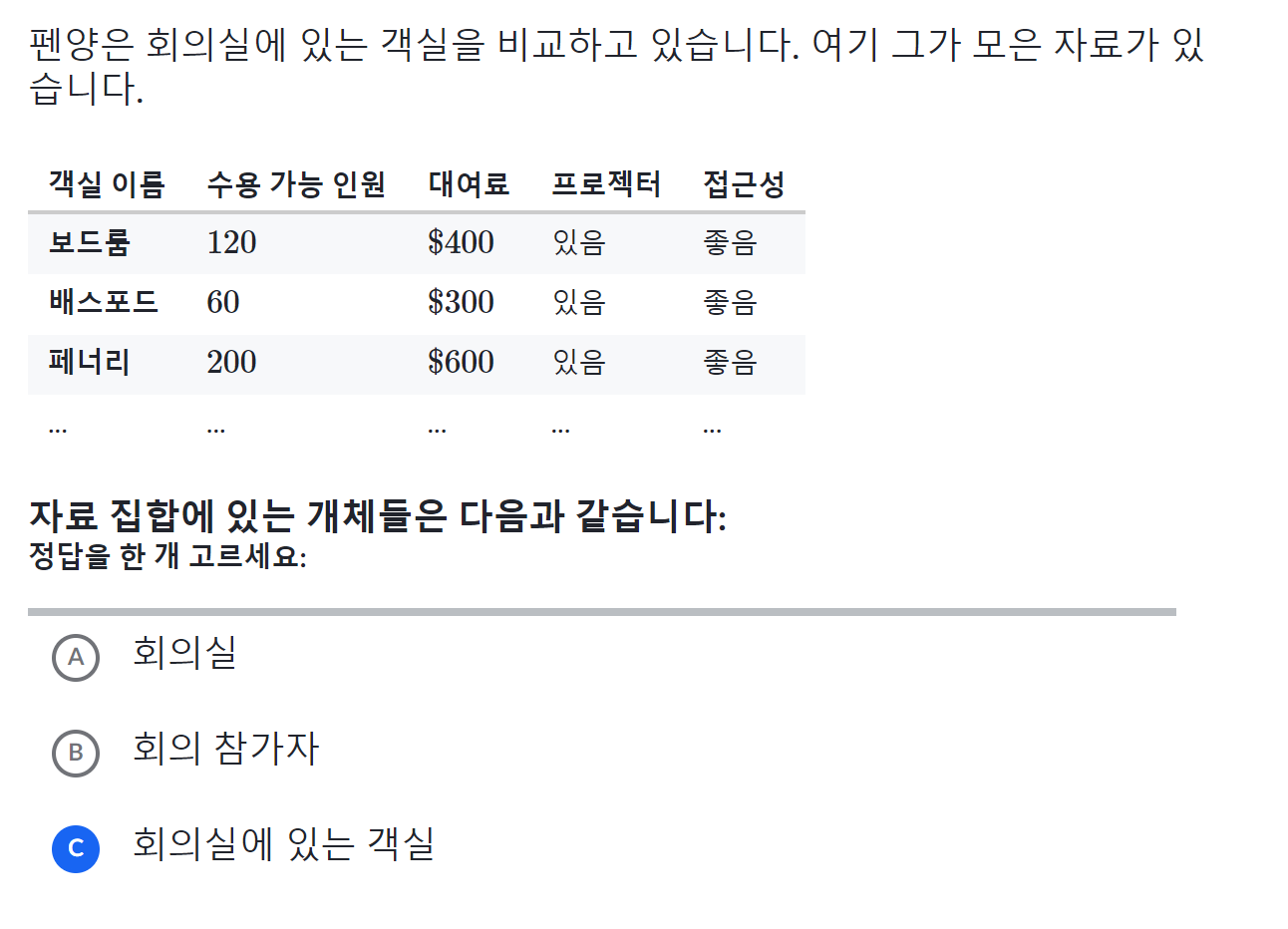 1단원인만큼 별 내용이 없다. 그림그래프, 막대그래프, 파이그래프를 종합한 일반적인 자료 해석 문제가 나온다. 난이도는 중학생 정도?