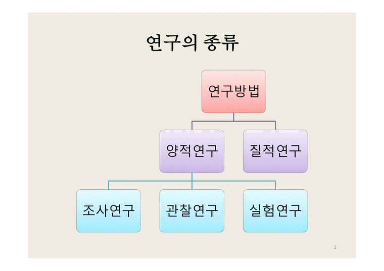 양적 연구를의 통계연구법은 표본연구, 관찰연구, 실험연구 3가지로 구분 할 수 있겠다.