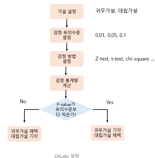 - 검정 유의수준(1종오류를 관리할 기준)을 세운다.