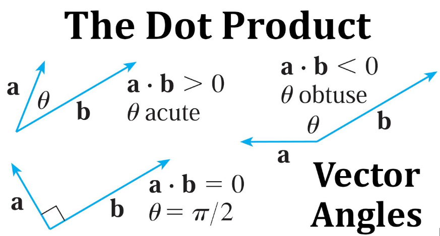 $ \overrightarrow{v} \cdot \overrightarrow{w} = \left\| v \right\| \left\|w \right\| cos(\theta) $