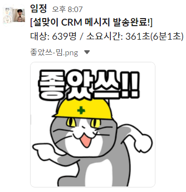 - (메시지 전송) 참여자의 정보를 토대로 총합된 1,2의 정보를 불러와 각자의 지표에 맞춰 슬랙 봇으로 전송하는 과정