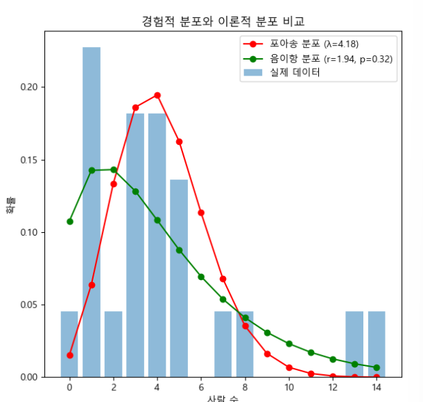 print(f"더 적합한 모델: {'음이항 분포' if nb_results.aic < poisson_results.aic else '포아송 분포'} (AIC 기준)")