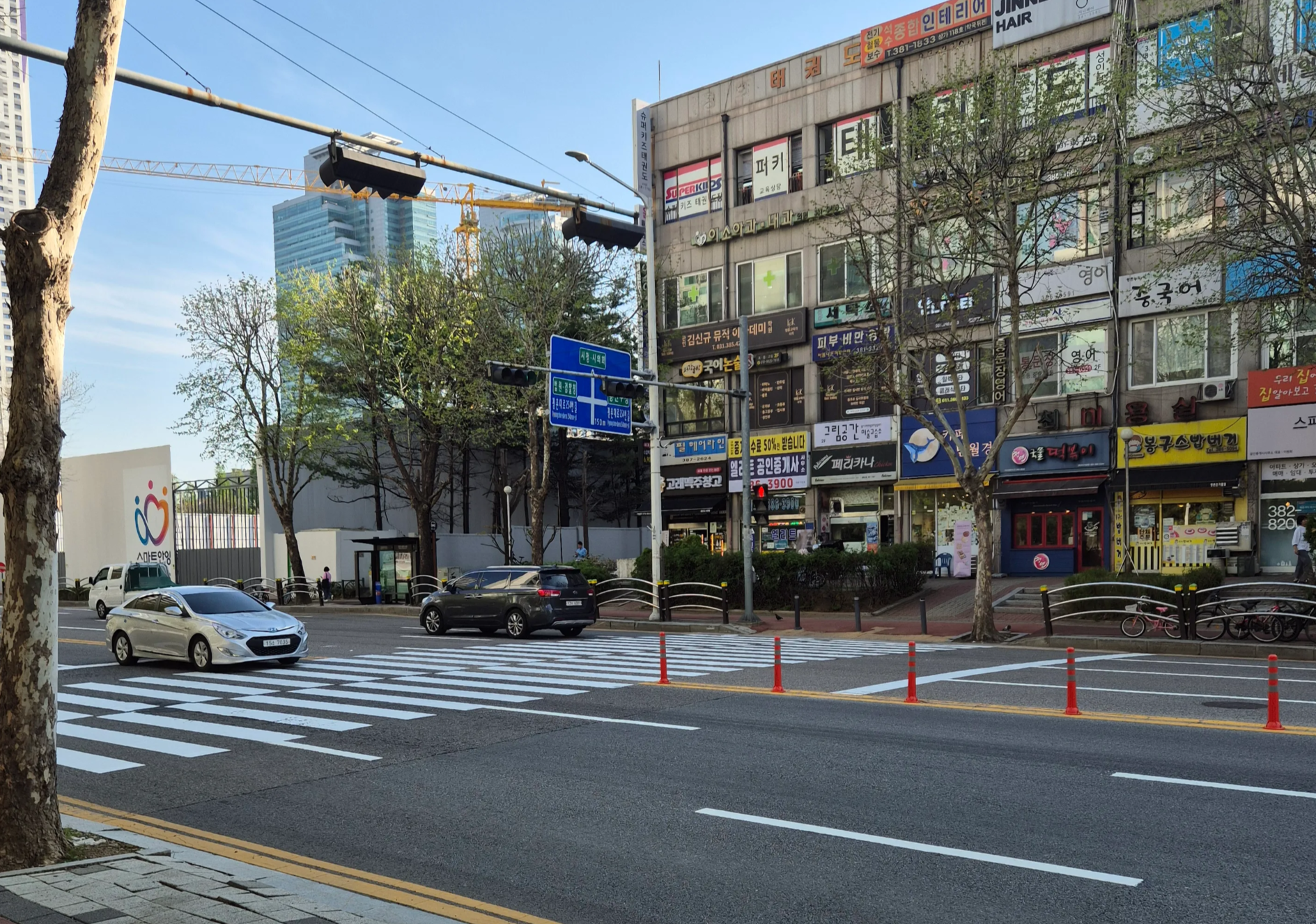 - 횡단보도 기준 동편에는 1710세대, 서편에는 1068세대의 아파트 단지