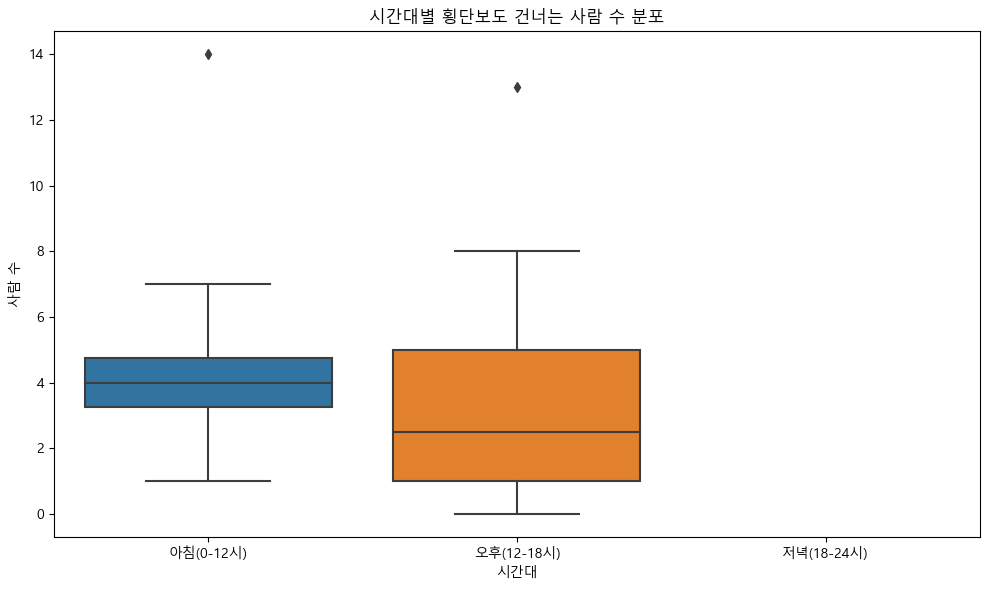 plt.title('시간대별 횡단보도 건너는 사람 수 분포')