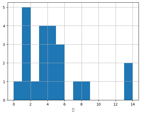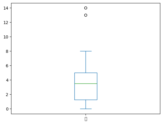 - 평균 4.1명, 중위 3.5, 표준편차 3.6명, IQR 기준 이상치 2개(13, 14)