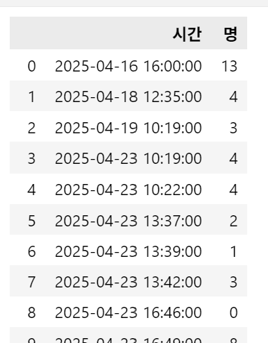 - 제가 주로 이동하는 시간인 출퇴근/점심시간/퇴근 시간에 수시로 22개 수기 수집