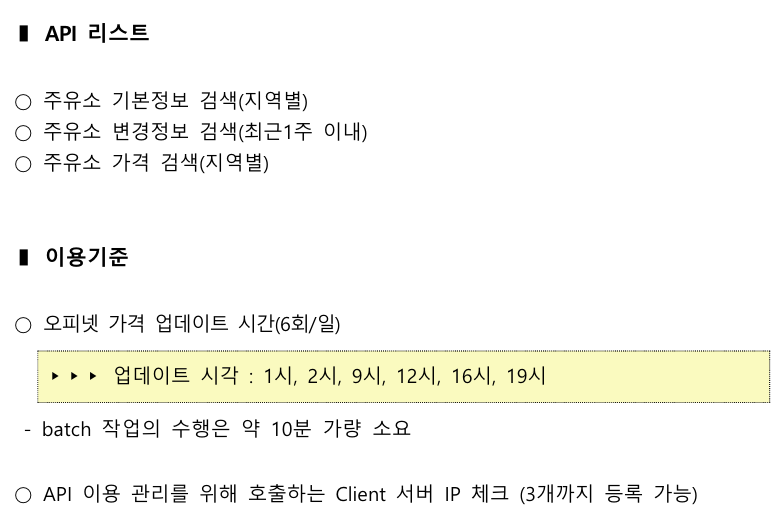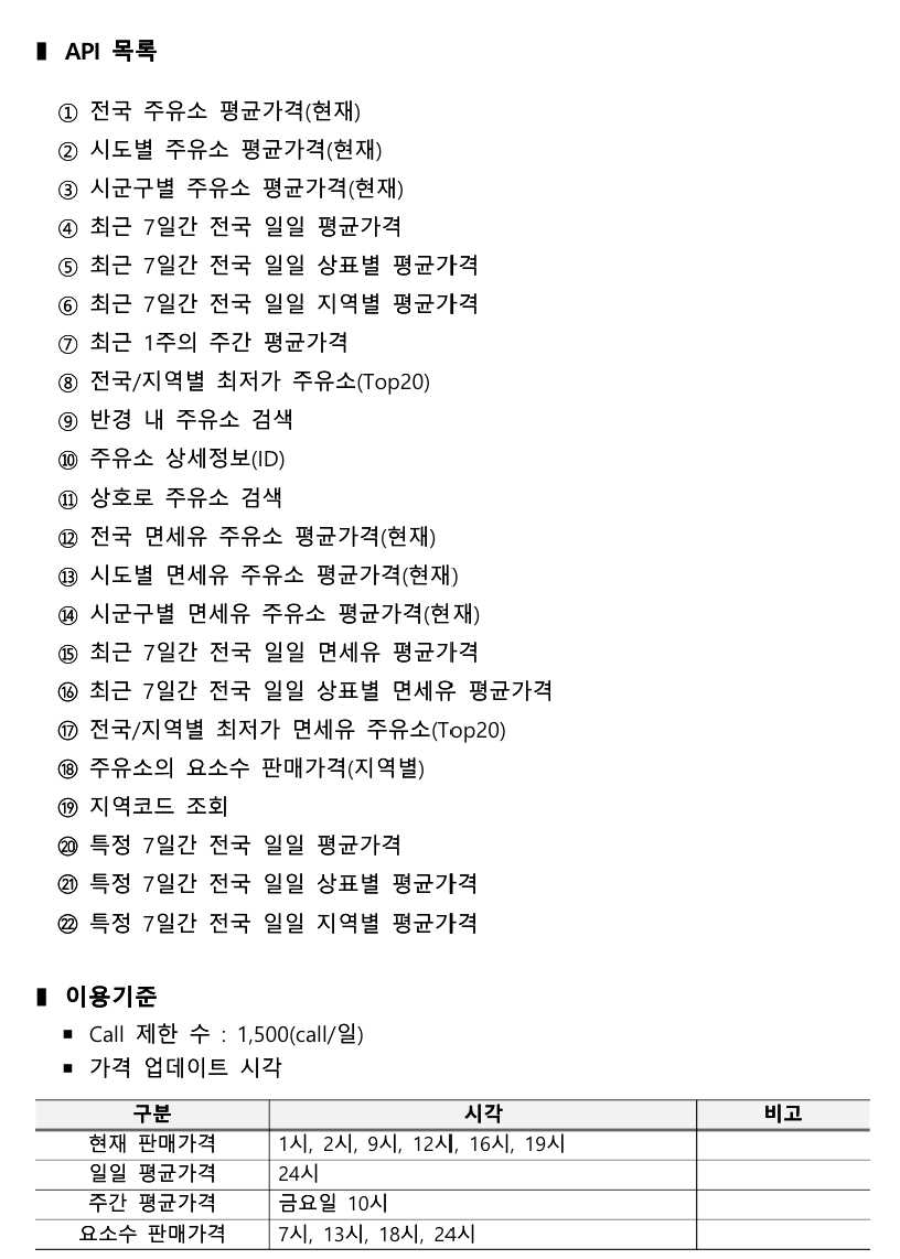 - 오피넷에서 제공해주는 무료 API / 유료 API가 존재