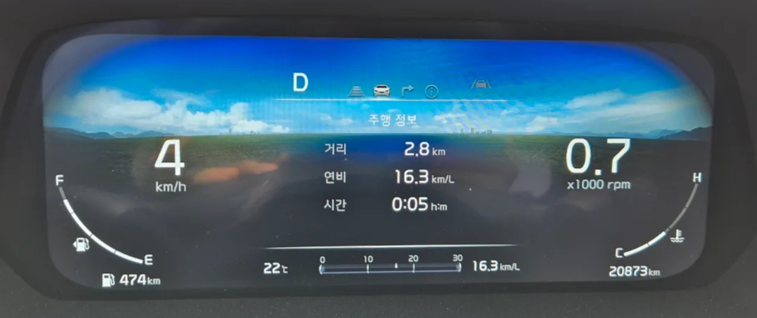 - 주유 팬널 기준 대략 2칸 ~ 3칸을 채울 수 있는 용량