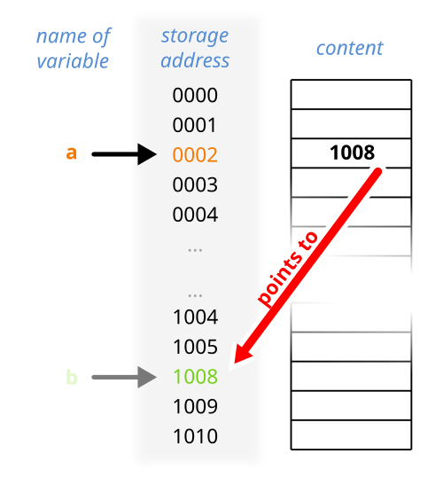 From Wikipedia, the free encyclopedia Object which stores memory addresses in a computer program I do consider assignment statements and pointer variables to be among computer science's "most valuable treasures." A pointer a pointing to the memory address