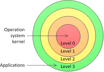 x86 CPU는 4가지 단계의 특권 단계(previlege level)을 제공하며, Level 0은 커널 상태 가장 수준 높은 상태. 반면 Level 3는 사용자 상태에서 사용할 수 있는 응용 프로그램이 접근 할 수 있는 단계입니다. 커널모드가 그럼 윈도우에서 관리자 실행 모드 인가 라는 질문에는 No 입니다.