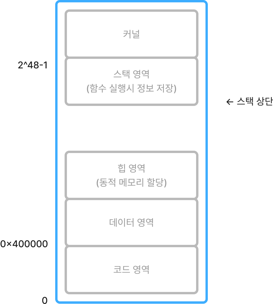 스택 영역에서 일어나는 일은 자료 구조의 Stack을 이해했다면 꽤나 쉬워서 간단하게 그림으로 넘어갑니다.