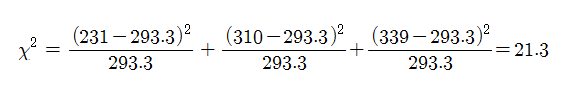 귀무가설 : H0 = 범주형 데이터가 나타날 확률이 다 같다(차이가 없다).
