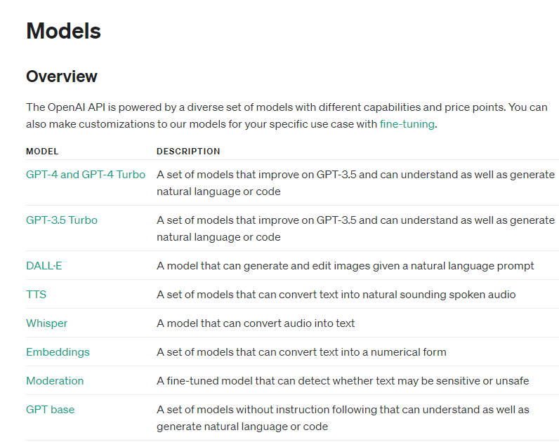 우리가 사용하는 Chat GPT는 대화형 인터페이스를 이용한 방법입니다. 이는 진입장벽을 매우 낮춰 빠른 유저 확보에 성공하였습니다. 이외에도 OPEN AI 자체에서 제공하는 API 서비스들이 있습니다. 다양한 기업들이 이미 OPEN AI가 공개한 API를 이용해서 서비스를 하고 있습니다.