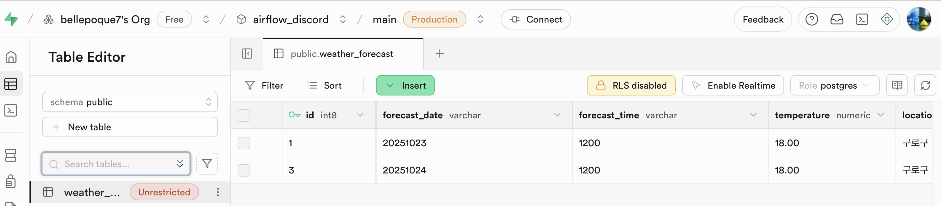 최근 Airflow 이 3.0으로 판올림 되었습니다. Web UI도 세부 탭으로 변경되고 유틸적인 부분이 더 늘어났습니다. docker를 이용하여 airlfow 3 설치도 해보고 실습 예제도 구성해볼겸 다음날 온도데이터를 supabase(PostgresSQL) 에 저장하는 예제를 작성해보겠습니다. airflow, 기상 API, discord, supabase 연결을 각각 테스트 해보고 종합적인 파이프라인도 정리해보겠습니다.