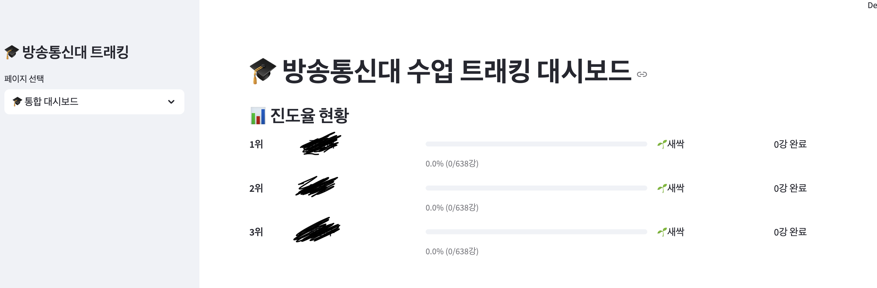 대시보드: 수업 진행 현황을 볼 수 있는 랜딩페이지
