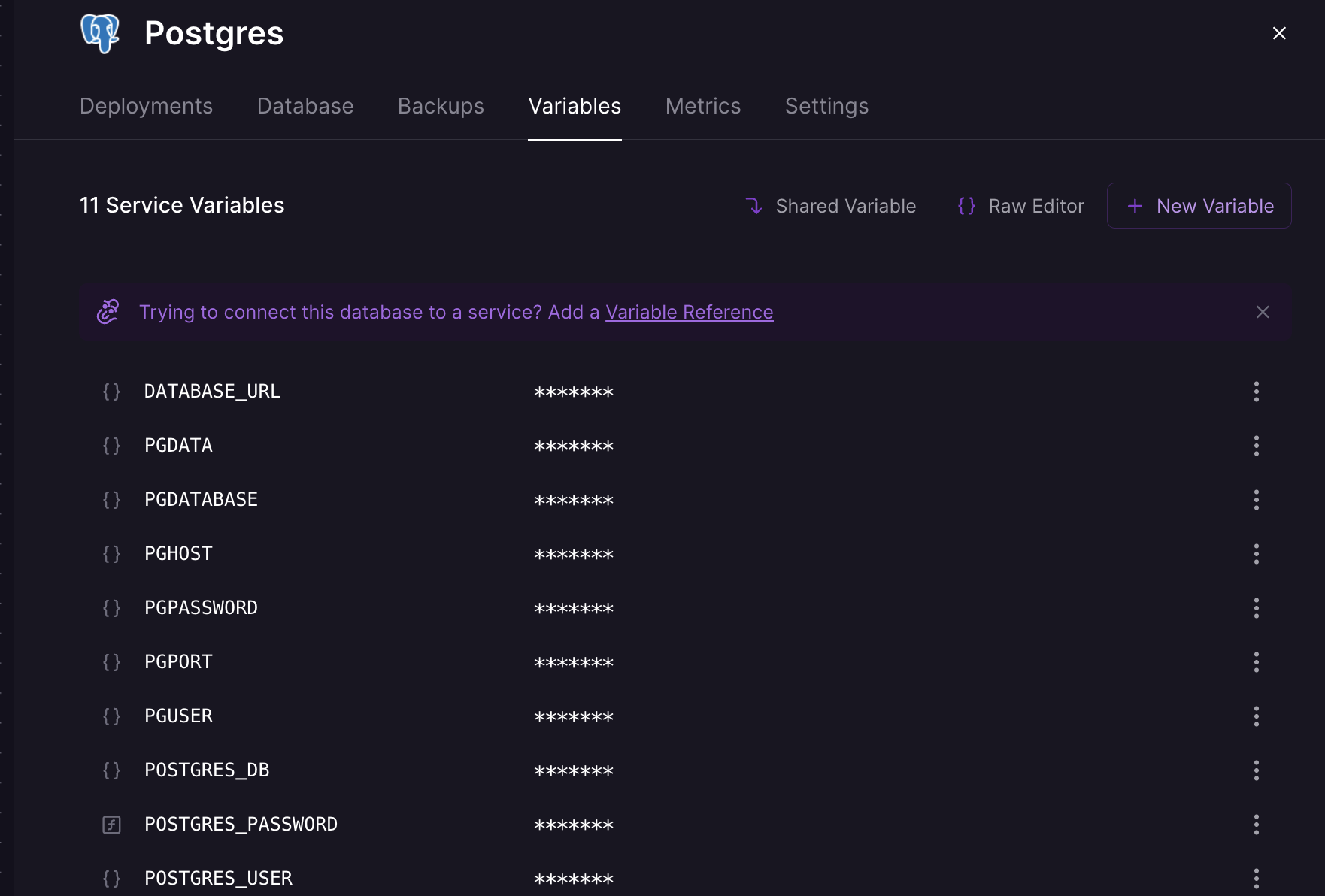 참고: Public HTTP Domain은 웹 서비스용 도메인이기 때문에 DB 접속 도메인은 따로 있음