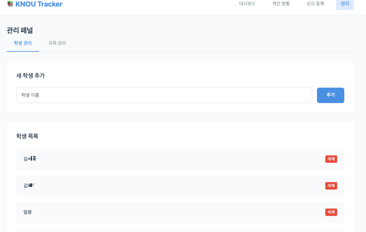 3. KNOU Tracker 사이트
