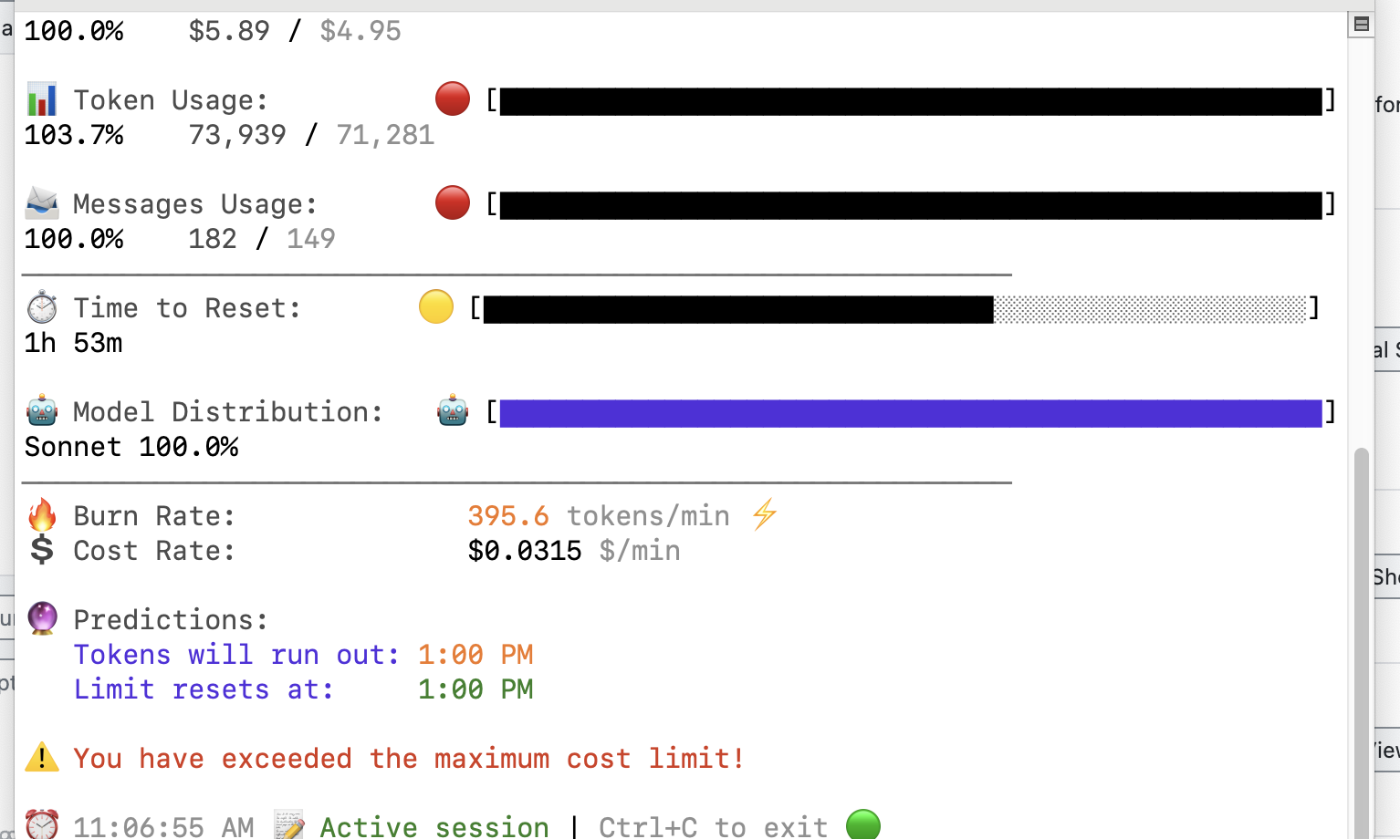 여기서보면 정확히는 Token과 Message 한도가 있는데, Token은 100%가 도달하면 얄짤 없이 더이상 프롬프팅이 불가능한 반면 Message는 100%가 도달 해도 어느정도 명령을 수행해줍니다. 초반에는 Limit이 걸리면 그냥 손놓고 있었는데 요즘 Gemini CLI이나 Codex CLI 라는 대체 툴도 많아서, 손놓고 놀지말고 도구를 바꿔서 사용하면 연속성있게 사용할 수 있을 것 같습ㄴ다.